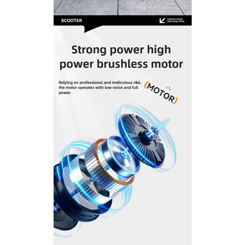 350W rated motor with 500W peak output delivers smooth acceleration and stable climbing for slopes up to 15°.