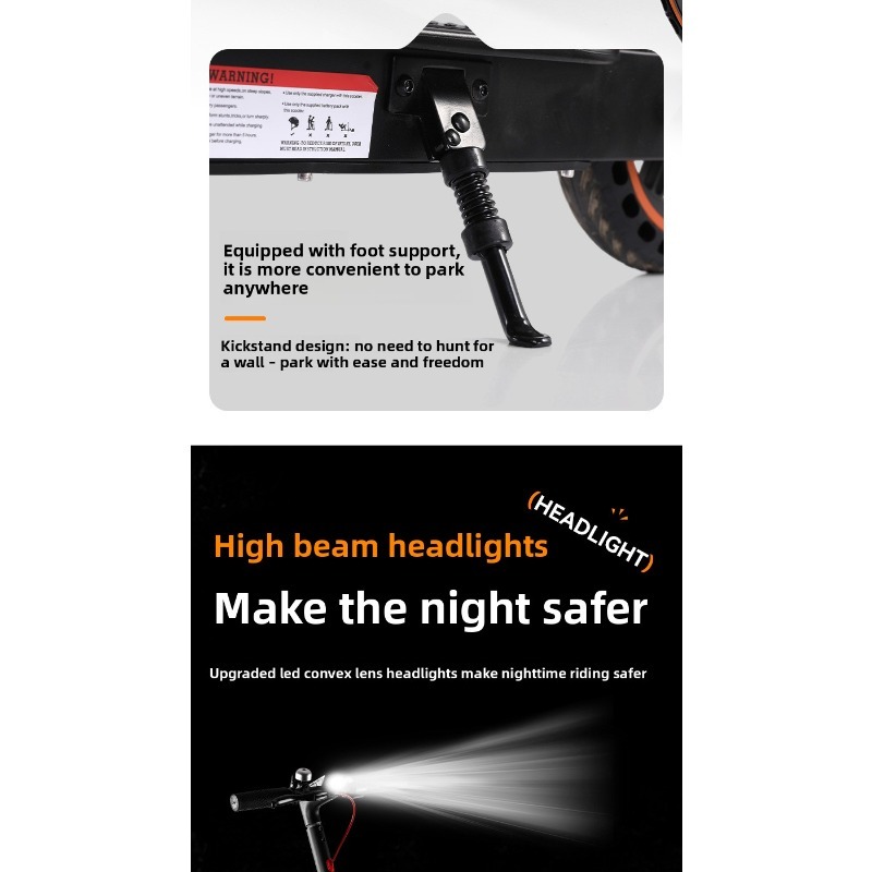 Equipped with a rear disc brake and front/rear lighting system (headlight + brake tail light) for safer night riding.